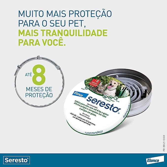 Coleira Antipulgas e Carrapatos Bayer Seresto para Cães e Gatos de até 8kg