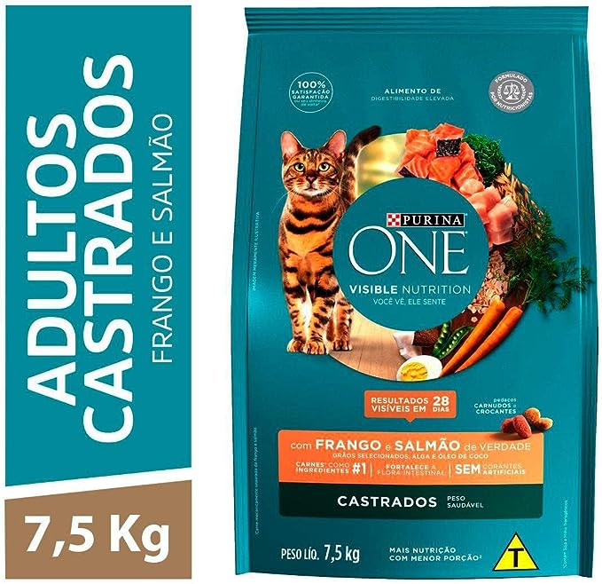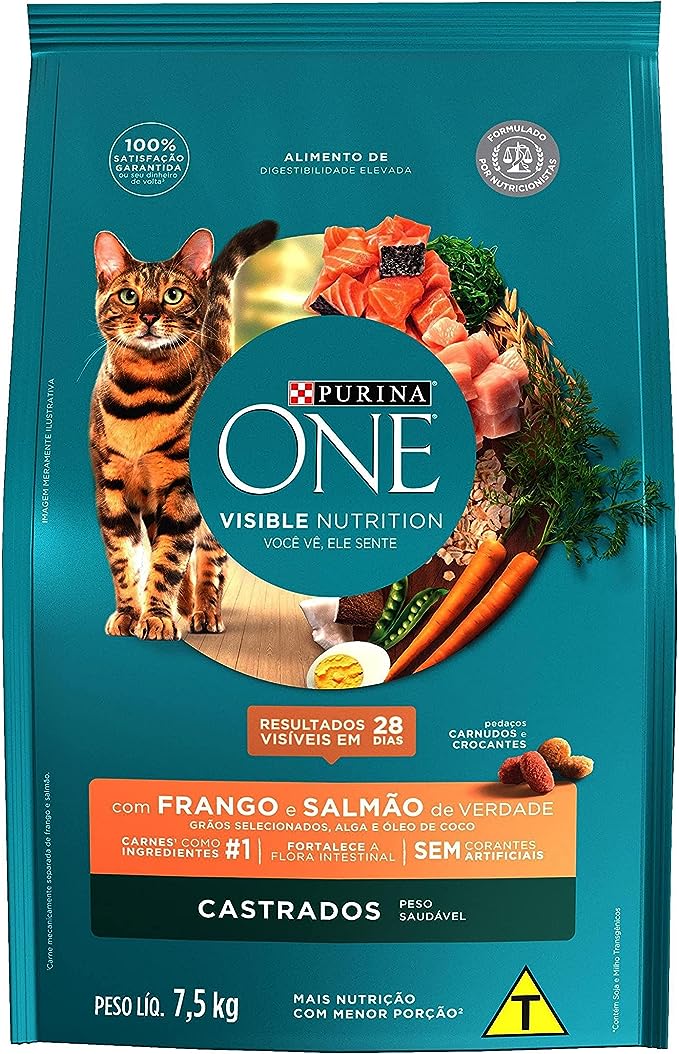 NESTLÉ® PURINA® ONE® Ração Seca para gatos adultos castrados todas as raças Frango e Salmão 7,5kg